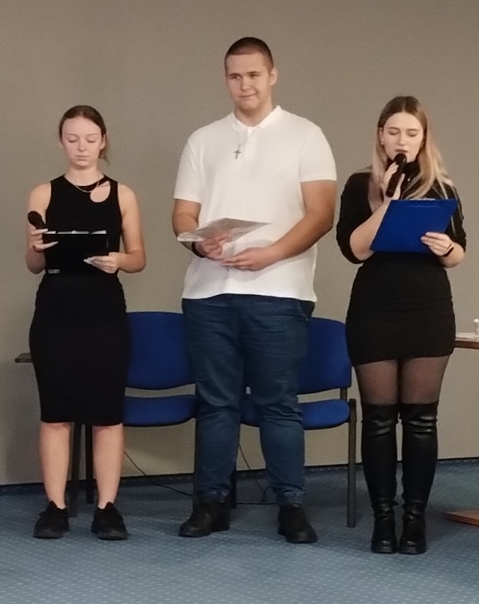 W dniu 10.10.2025 w naszej szkole miało miejsce szkolne spotkanie integracyjne z okazji Dnia Nauczyciela. Ochotnicy przebrali się za nauczycieli próbując wcielić się w ich osobowości. Następnie odbył się konkurs wiedzy na temat powiedzonek i sloganów używanych przez nauczycieli naszej szkoły. Nie było łatwo, wśród pytań były sformułowania pułapki, czyli teksty nieużywane w naszej szkole. W szranki stanęło 10 trzyosobowych drużyn. Organizator imprezy, czyli szkolny samorząd uczniowski nagrodził uczestników słodyczami.