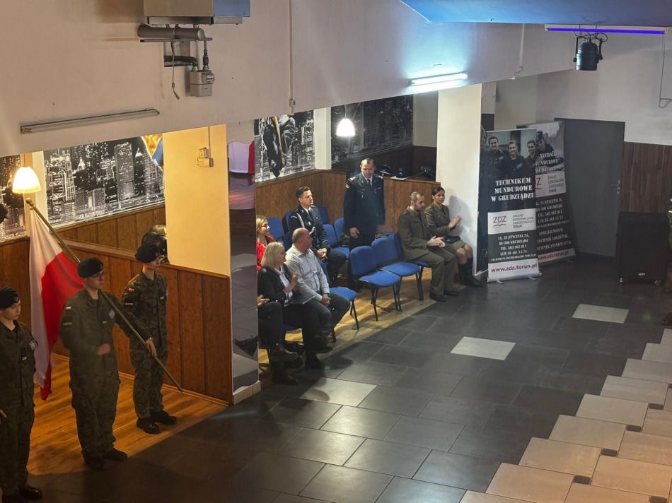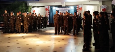 Właściwa uroczystość rozpoczęła się od odśpiewania hymnu państwowego, po czym głos zabrała pani dyrektor. Z kolei odbyło się ślubowanie, a następnie do nowych kadetów zwróciła się Prezes ZDZ Toruń, organu prowadzącego nasza szkołę. Każdy z pierwszoklasistów otrzymał akt ślubowania.