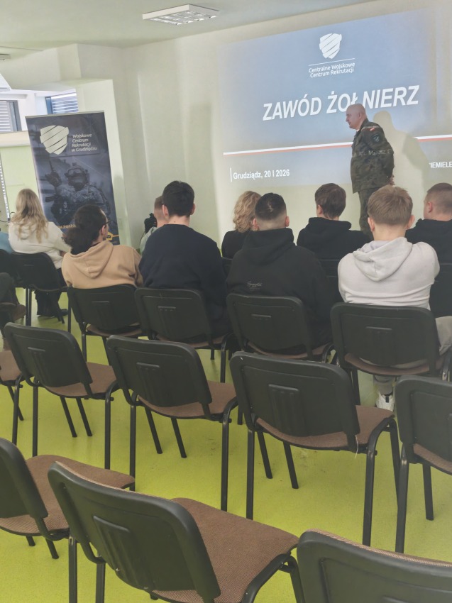 2026-01-22Spotkanie z przedstawicielami WCR Grudziądz.21 stycznia 2026 miało miejsce spotkanie uczniów klas IV naszej szkoły z przedstawicielami WCR Grudziądz. Celem spotkania było zapoznanie się z ofertą służby wojskowej oraz zasadami wstąpienia do Wojska Polskiego.